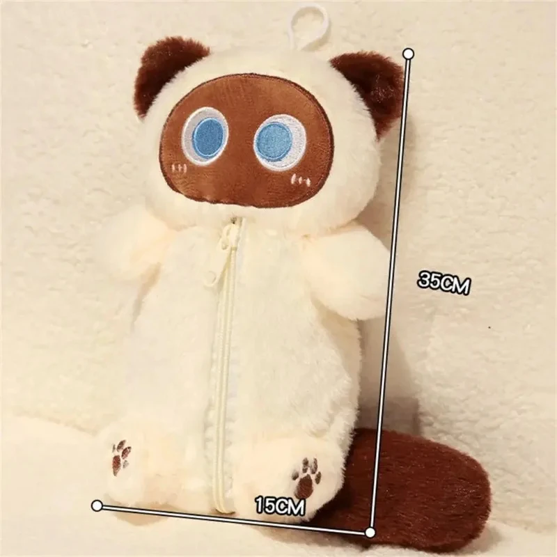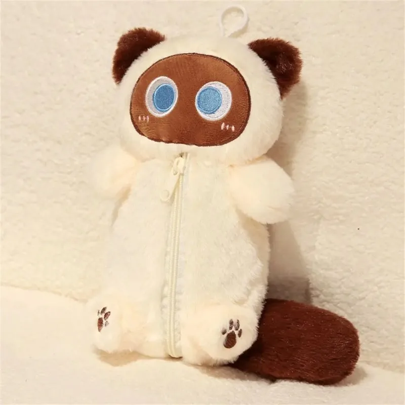 Siamese Cat Plush Pencil Case Pen Storage Bag Stuffed Animal Cat Pencil Bag Cute Design Large Capacity Stationery stationery