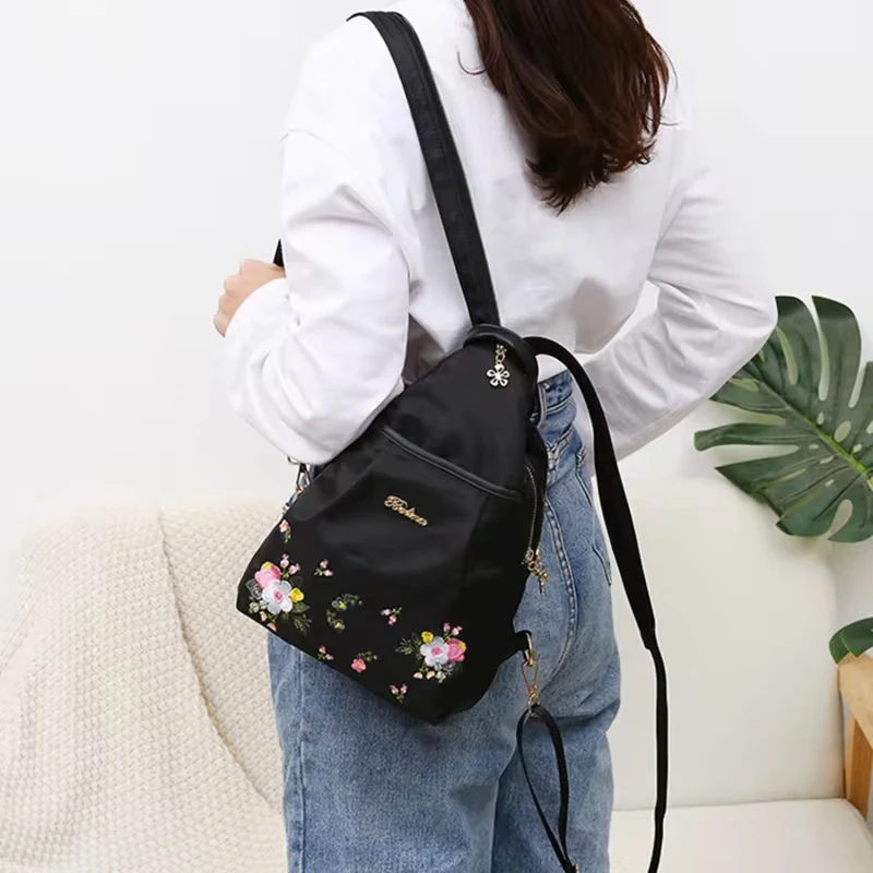 • Waterproof Oxford Women Backpack Fashion Casual Embroidery Bag Designer Female Large Capacity Travel Handbag Shopping Knaps